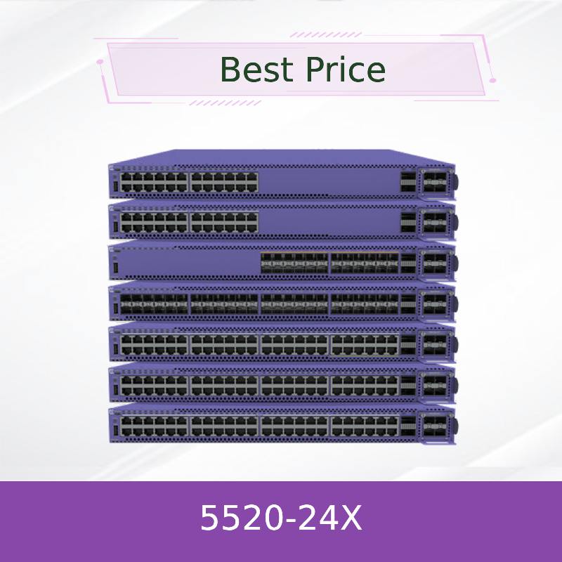 سوئیچ ExtremeSwitching 5520-24X یک سوئیچ با عملکرد بالا و فرم ثابت است که برای استقرار در لبه و تجمیع سازمانی طراحی شده است. این سوئیچ همه کاره 24 پورت SFP+ را ارائه می دهد که از اتصال چند سرعته پشتیبانی می کند، همراه با گزینه های آپلینک انعطاف پذیر، پشتیبانی قوی از Power over Ethernet (PoE) و ویژگی های امنیتی پیشرفته. بخشی از سری سوئیچ 5520، یک پلتفرم سخت افزاری جهانی را ارائه می دهد که از سیستم عامل های دوگانه (ExtremeXOS یا VOSS) برای عملکرد شبکه سفارشی و ادغام یکپارچه در زیرساخت های موجود پشتیبانی می کند.